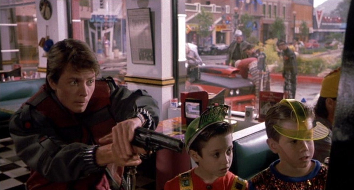 As an aside, I've heard a number of people, including the movie's screenwriter Bob Gale, saying BTTF2 predicted 3D movies. First of all, 3D movies existed well before the 1980s, and second, do all those people see that shark biting Marty in the middle of the street and think, "Oh yeah, just like Avatar"?