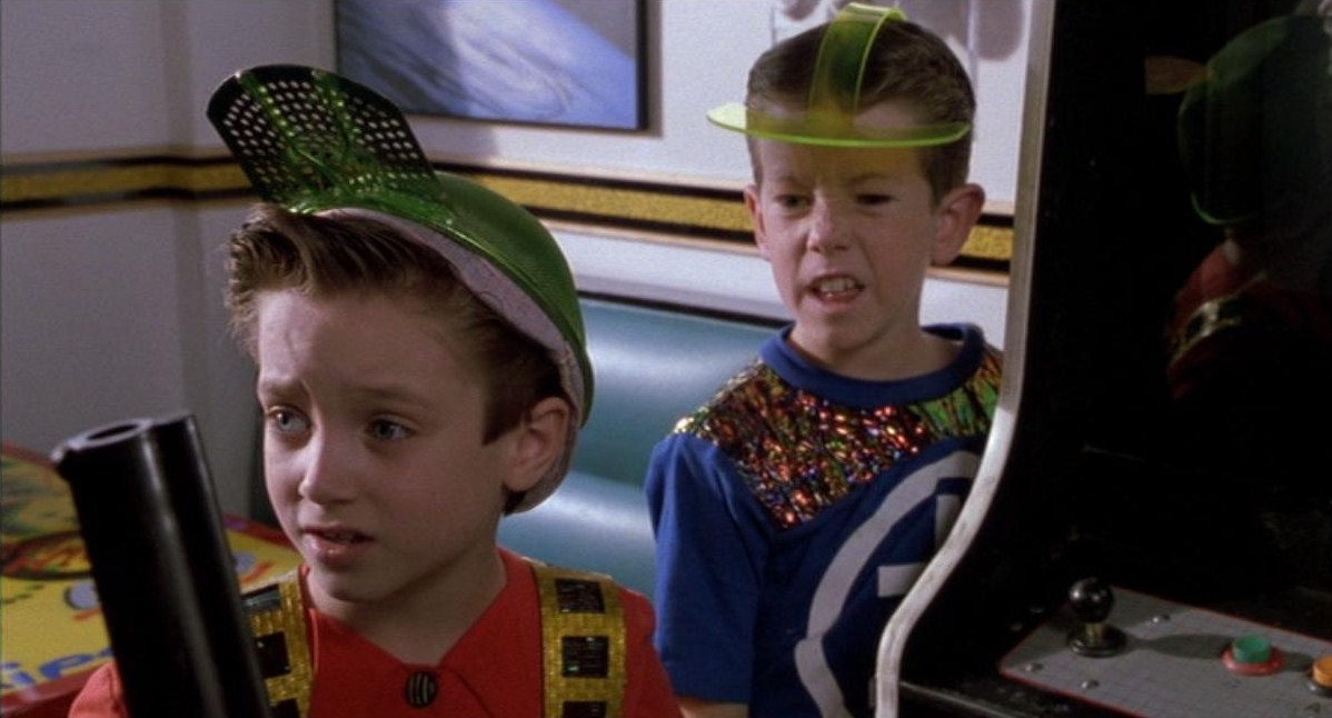 Now we see some little kid and Elijah Wood messing around with the video game Wild Gunman. It's worth noting that Wild Gunman was never an arcade game like this, but whatever. Marty plays and the non-Elijah Wood kid says it seems like "a baby's toy" because it requires the use of one's hands. In a post-motion control, post-Xbox Kinect world, I can imagine there might be some kid of this age today who hasn't played a video game with their hands, I guess, so let's say 6/10.