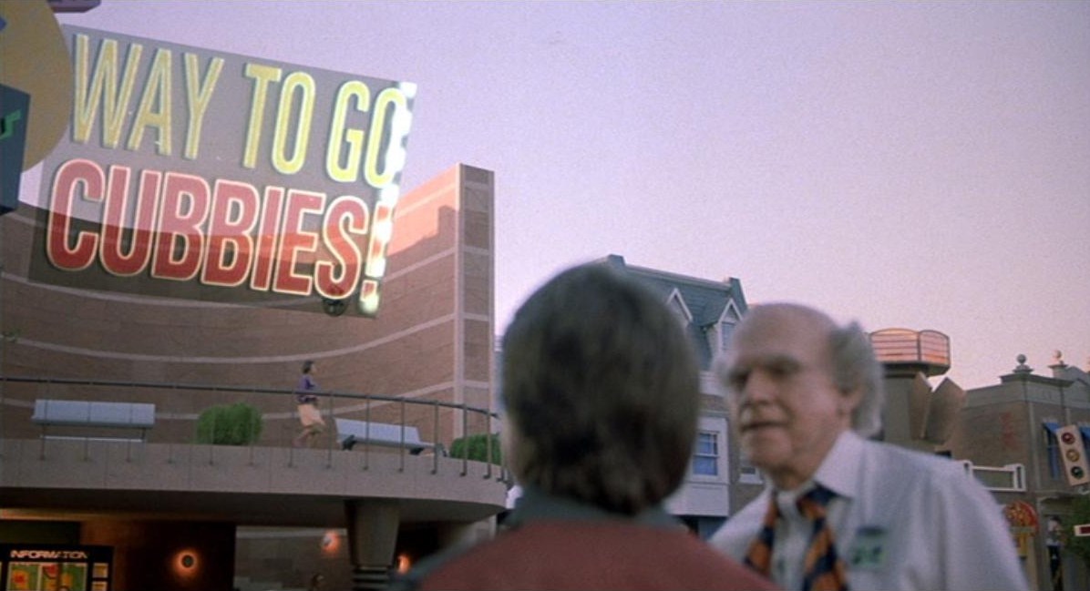Now we see what some of us noticed in the USA Today scene: the Chicago Cubs have won the World Series. We won't hold it against the movie that the World Series hasn't even started yet - that's on Major League Baseball, which should've changed the schedule to accommodate Back to the Future Part II, obviously. However, we'll recall USA Today said the Cubs swept the Series in five games. Whether an oversight or a prediction of a nine-game World Series in the future, the movie did get that detail wrong, so that's a 1/10.
