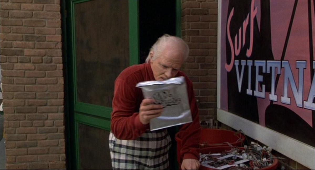 In the sports teases at the top, we see that the slamball playoffs are starting and that someone has run a three-minute mile. (There's also a bit about the World Series that will be discussed at length later.) Slamball, a variation on basketball played on trampolines, didn't exist when the movie came out and while it was never important enough to get to the front page of a major newspaper like this, it is neat to see a fictional sport turn into a real one. A lot of people could see the newspaper in the movie and assume slamball existed in the 1980s. Let's give this a 6/10.