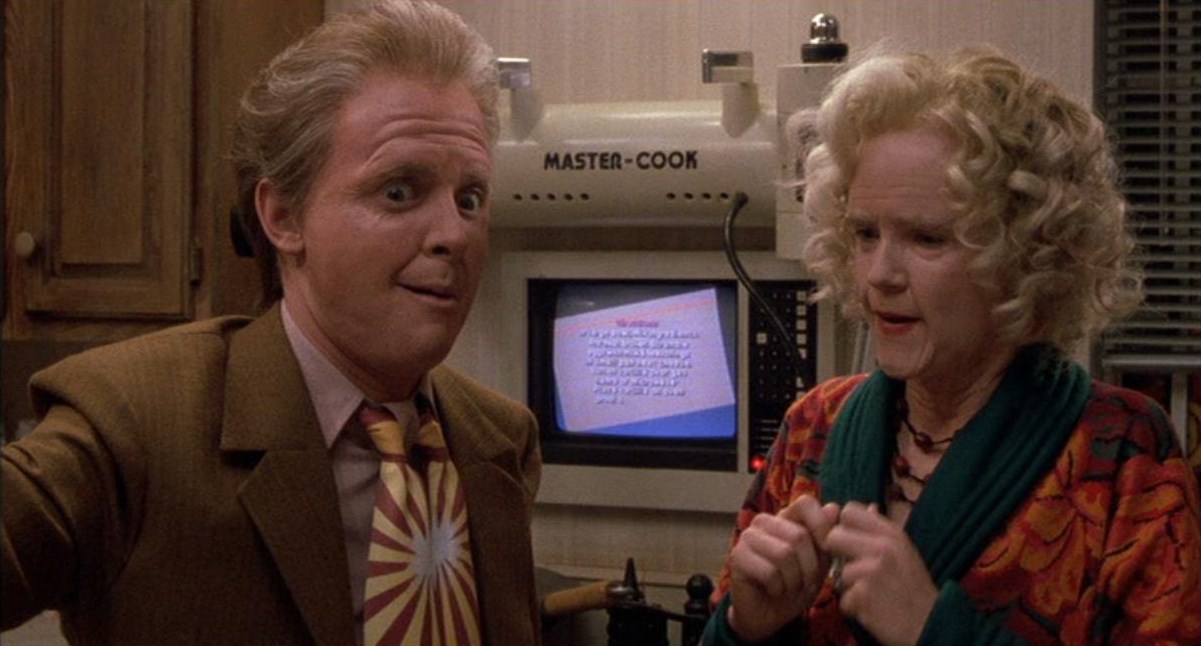As Marty Sr. talks to Lorraine, we see a large device behind them bolted to the wall labelled Master Cook. It has a large screen and appears to display recipes. This could exist in theory, but I can't imagine someone having something so bulky in their kitchen, especially in the age of smartphones.