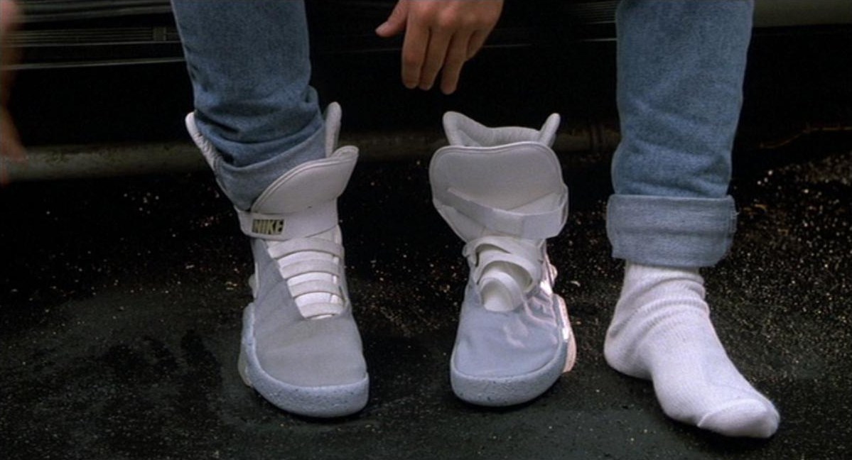 Marty puts on a pair of self-lacing Nikes. The shoes look plausible enough, but they are, of course, self-lacing, and that technology is not commonplace. However - and this is a theme we'll run across again - Nike has sold replicas of these shoes before and intends to sell pairs that work as they do in the film. It's unclear as of my writing this whether they'll get them out this year or not, and certainly Oct. 21 would be a surprise. Either way, nobody has power laces on their shoes, so this gets a 4/10.