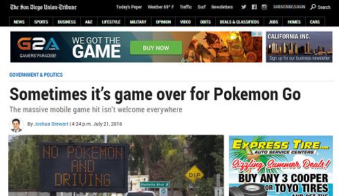 Sometimes it's game over for Pokemon Go, San Diego Union-Tribune, July 22