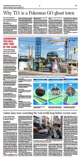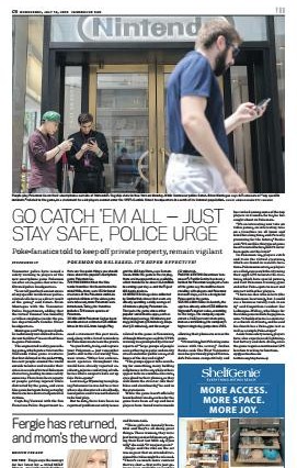 Pokemon Go released. It's super effective!, Vancouver Sun, July 13