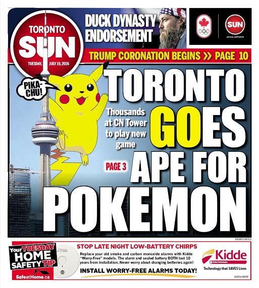 Toronto Goes Ape For Pokemon, Toronto Sun, July 19