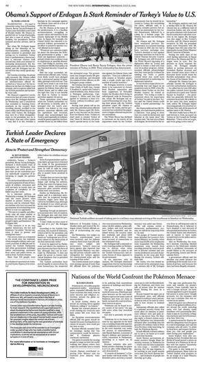 Nations of the world confront the Pokemon menace, New York Times, July 21