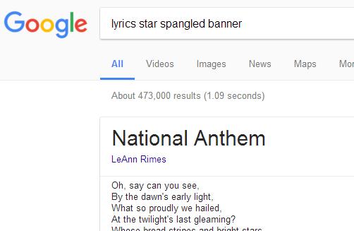 The phrase "Welcome to Dumpville" yields 15,700 hits on Google, while "Welcome to Dumpsville" is just a touch lower at 14,900 results. Worse still, Google tries to correct you on the dumpville search, and includes a bunch of pictures that say "Welcome to Dumpsville." You can see how a normal, well-adjusted, not-Simpsons-obsessed person could make this mistake on deadline. The moral of this story: The way Google now spits out information at the top of a search can yield some very poor information. Believe it or not, neither Jimi Hendrix nor LeAnn Rimes wrote The Star-Spangled Banner. (Click the image below to see who Google thinks wrote it this week!)